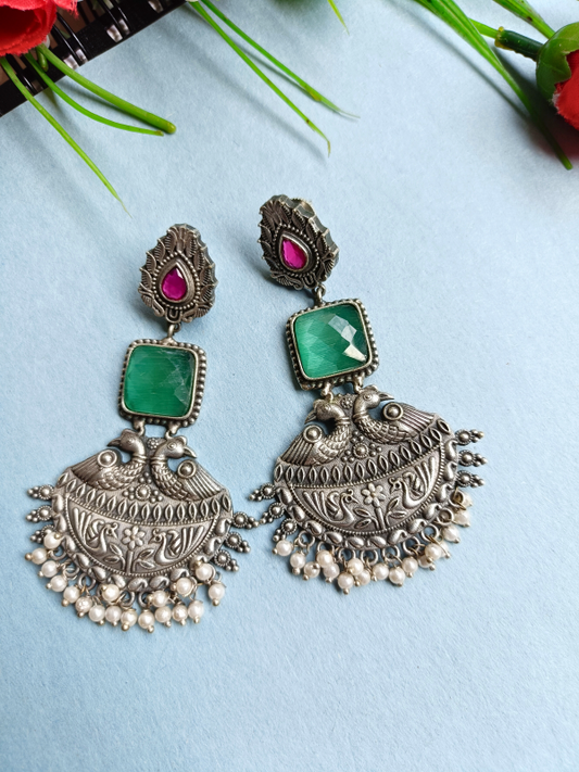 Anu Priya Silver Oxidised Earrings
