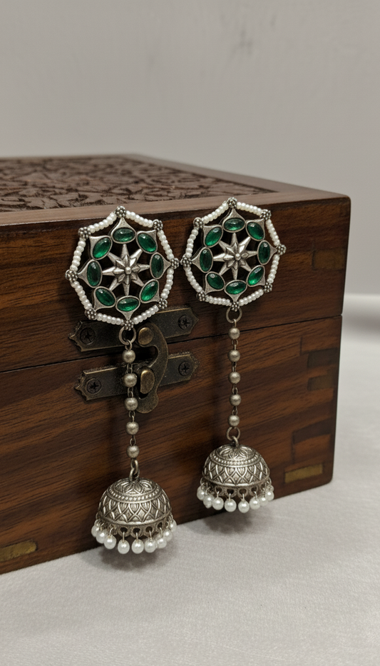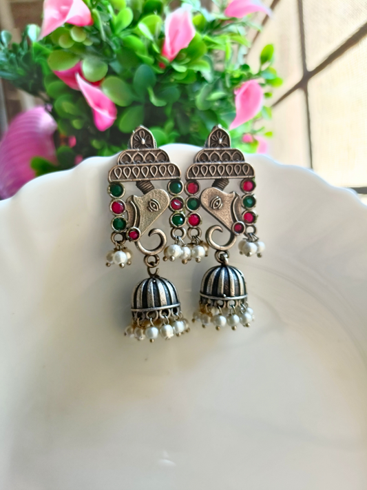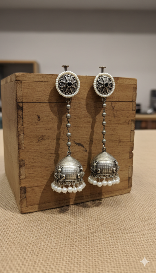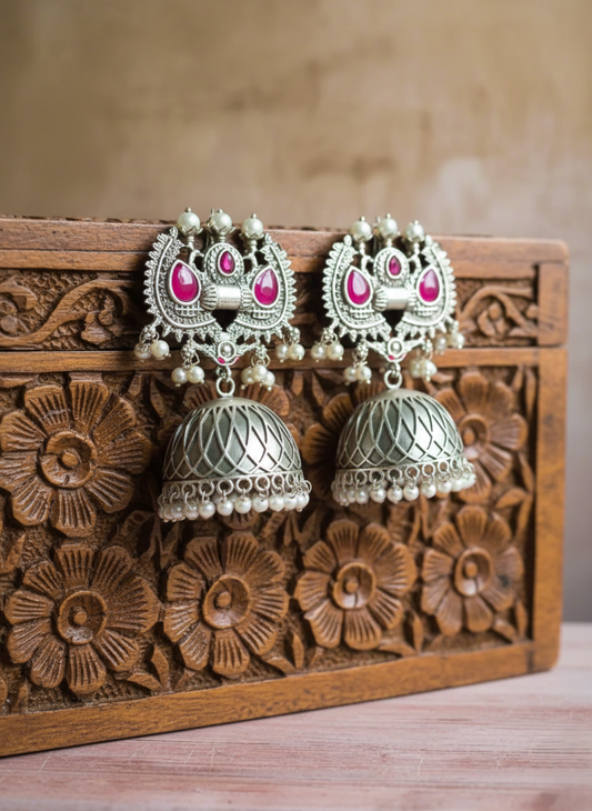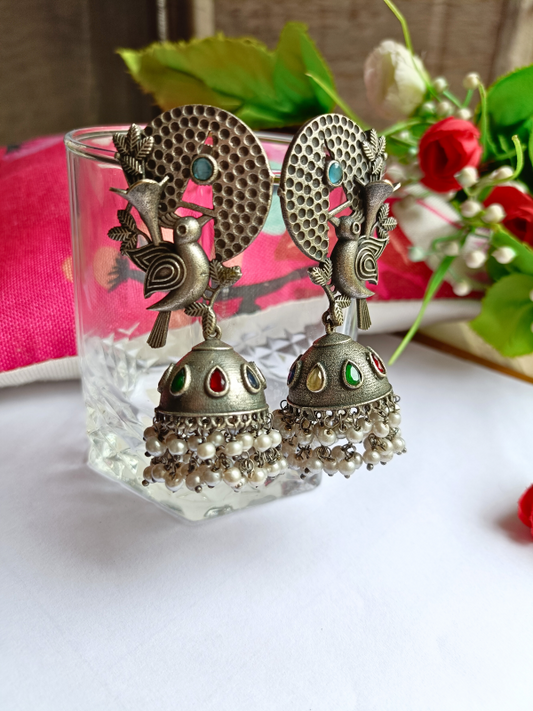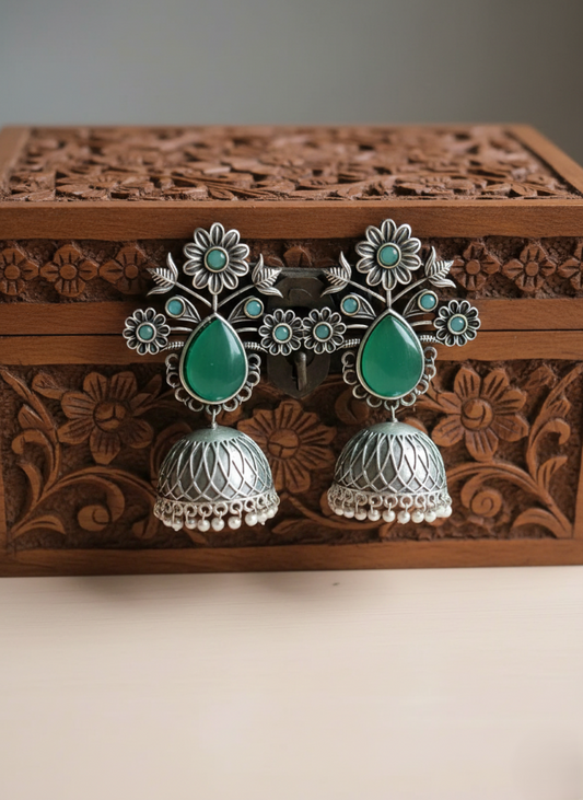 Antique Vedas Oxidised Jhumki Earrings